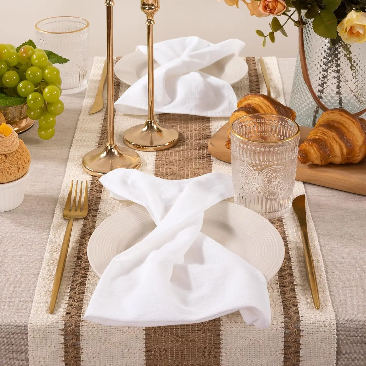 【Material】High quality thick and soft cotton hotel napkins,durable, reusable and non-disposable.Cotton napkins work well in rustic, bohemian, farmhouse or contemporary settings.These cotton napkins can be folded into different shapes, bring unique charm to your dining experience, make a deep impression on your guests.