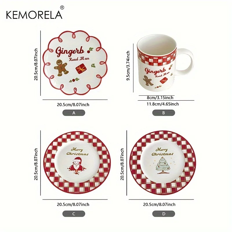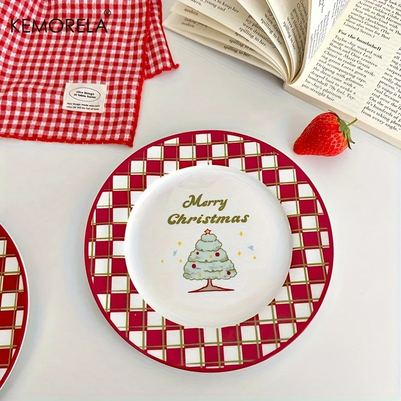 Christmas Plates Ceramic Plate Platter Serving Fruit Tray Porcelain Dish Dinner Appetizer Dessert Candy Snack Salad Dinnerware