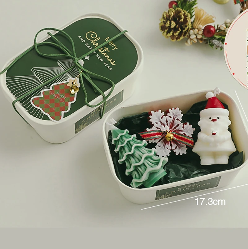 Christmas Candle Set: This set includes 4 uniquely designed Christmas candles and a carrying bag. They will create a romantic and enchanting atmosphere for your Christmas party, making them the perfect holiday decoration.
