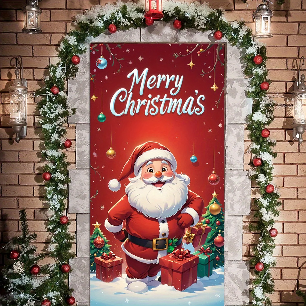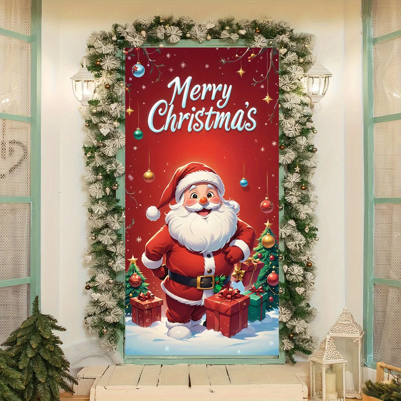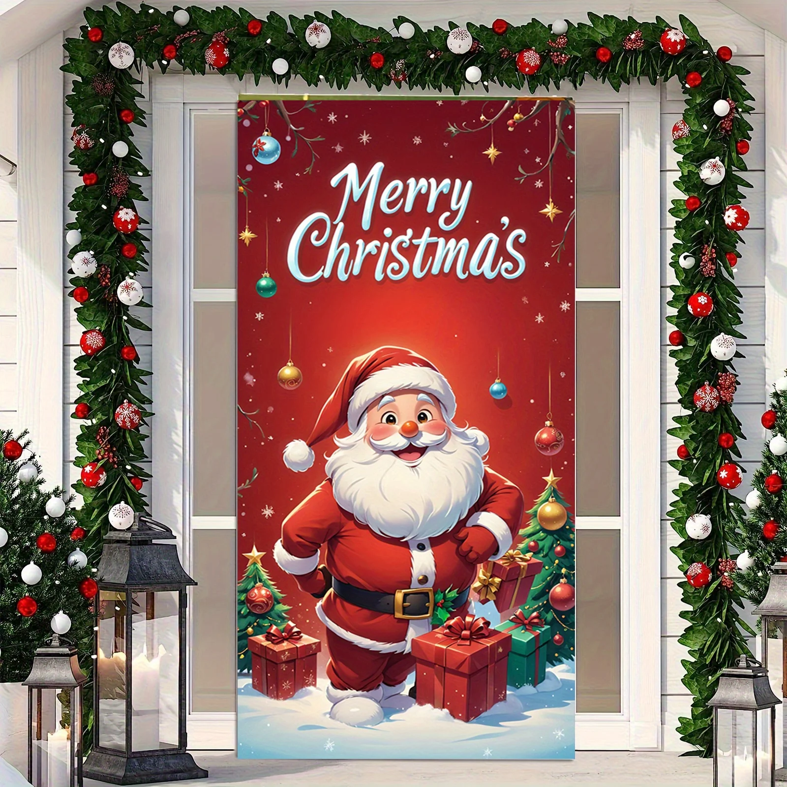 Santa Claus giving gifts theme Christmas decoration door cover, suitable for home and party
